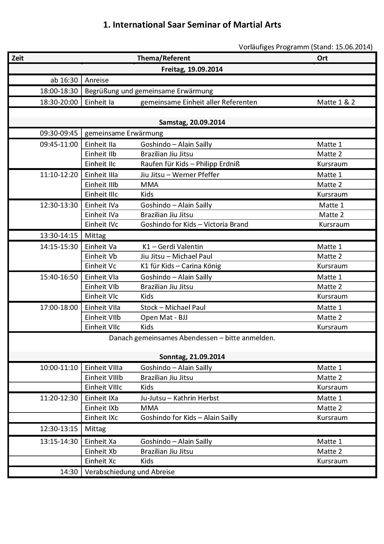 1. International Saar Seminar of Martial Arts, 2014